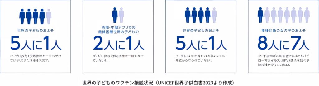 国連児童基金(UNICEF)のデータによると、毎日4,000人の子どもがワクチンで防げる感染症で命を落としていると報告されています。※3