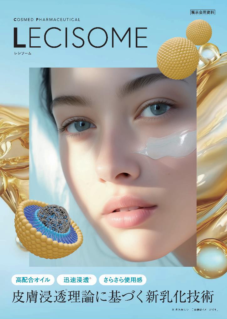 「レシソーム」は合成界面活性剤を使用せず、細胞膜の主成分である「レシチン」を用いて乳化、親水性ポリマーで水分をキャッチして膨潤、さらにオイル成分の分子のベールで水分を閉じ込める、W/W/O(Water in Water-soluble polymer in Oil)型の小胞です。