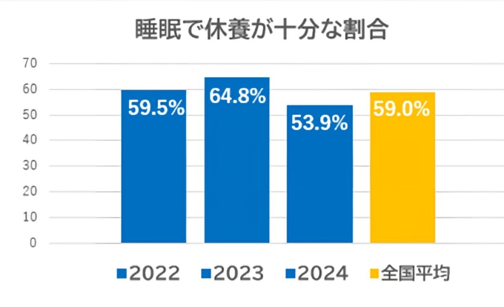 現状:2024年「睡眠で休養が十分な」割合 53.9%