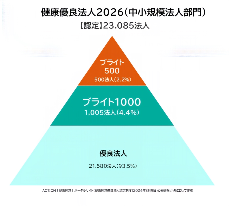 ※1 ACTION!健康経営|ポータルサイト(健康経営優良法人認定制度)2026年3月9日 公表情報より